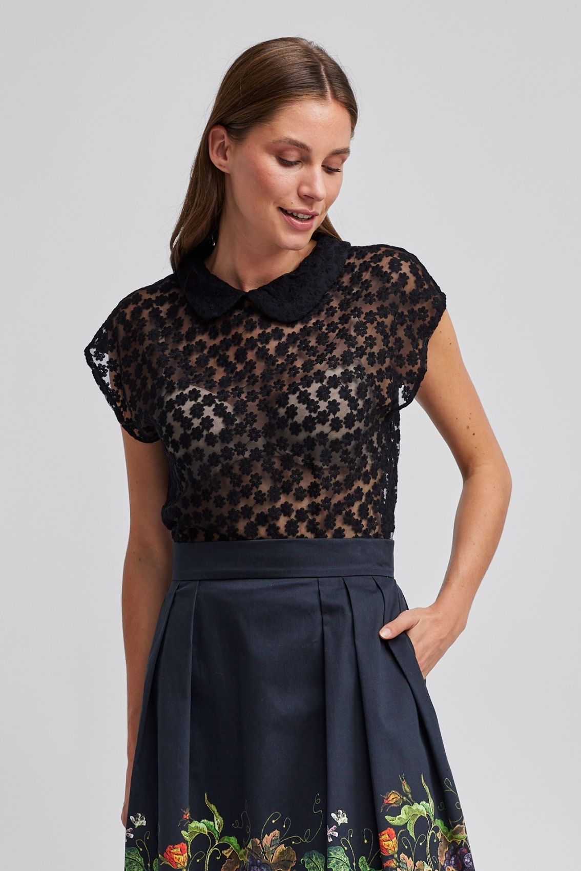 Shirt mit Twist-Kragen Weiss-Senfgelb