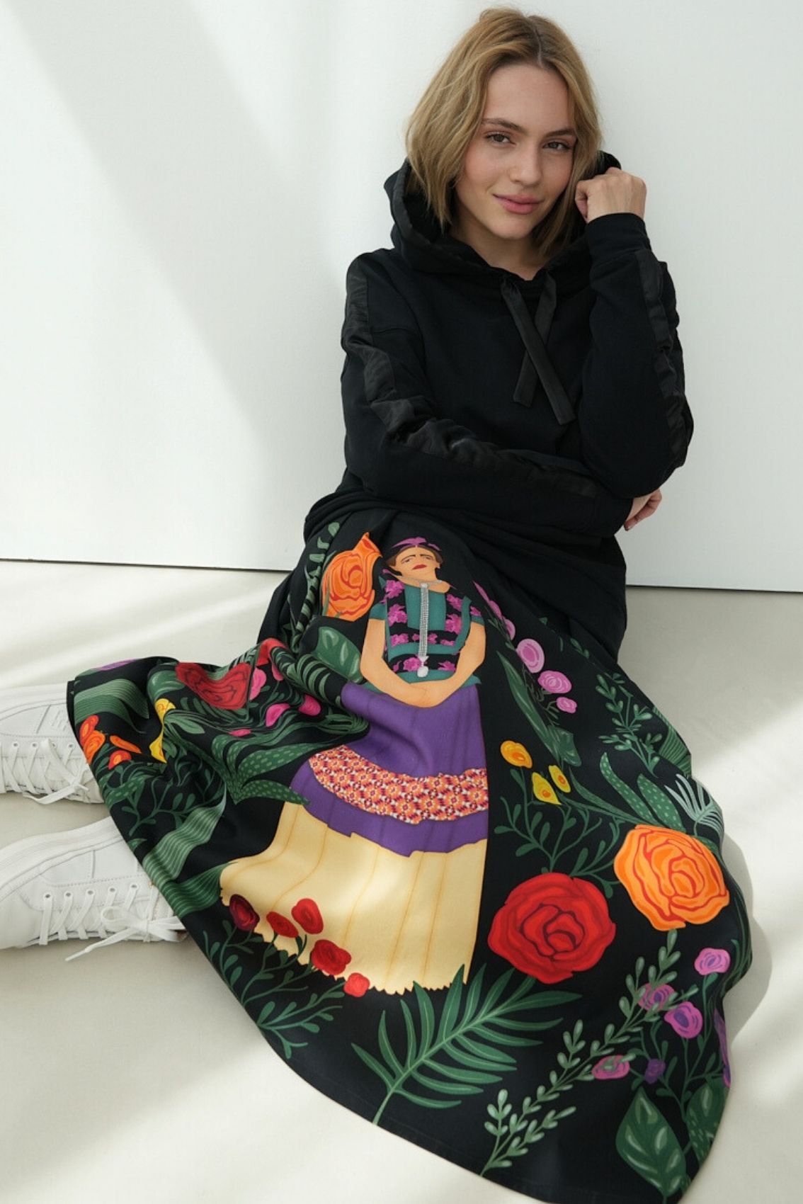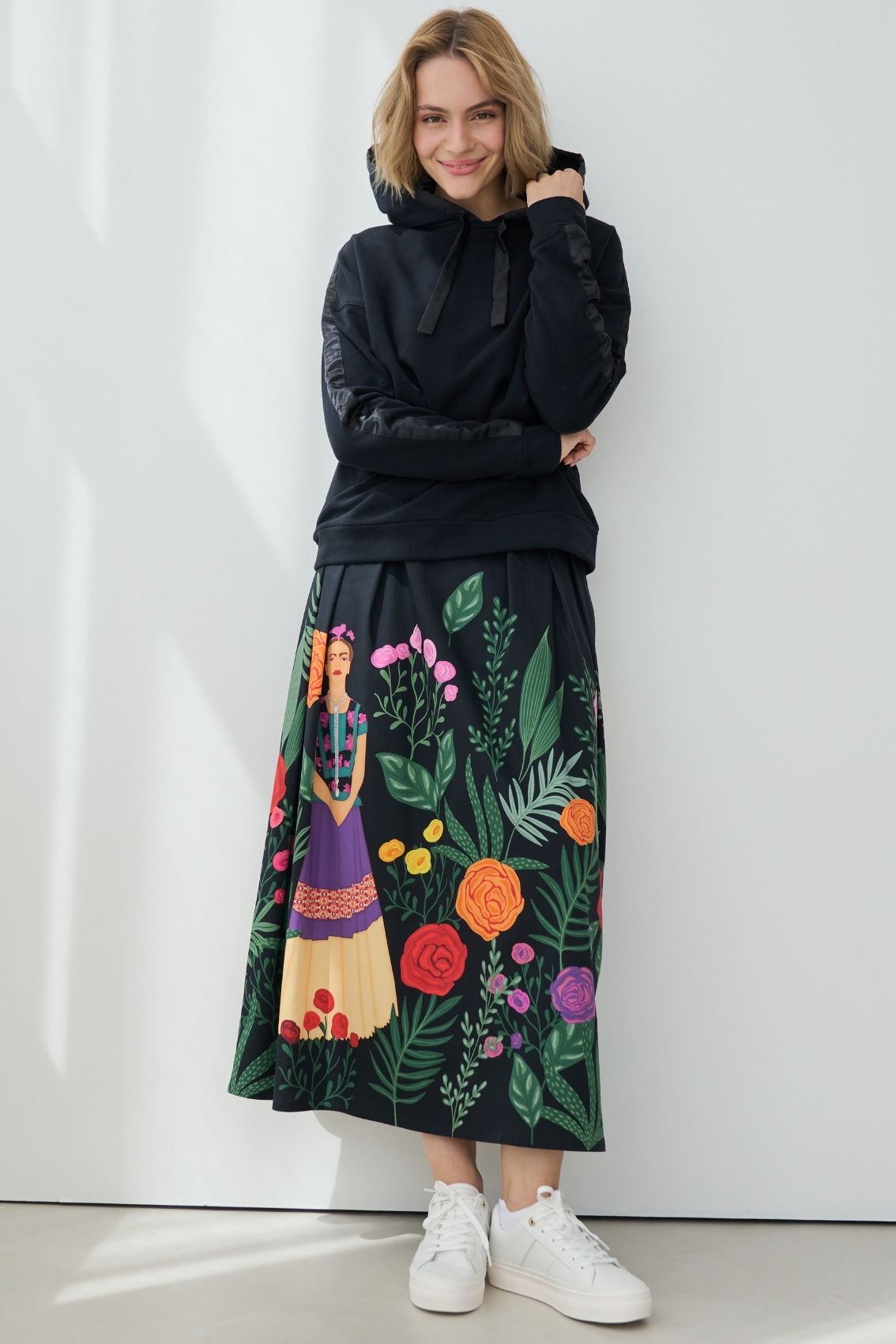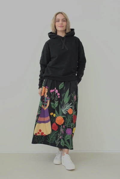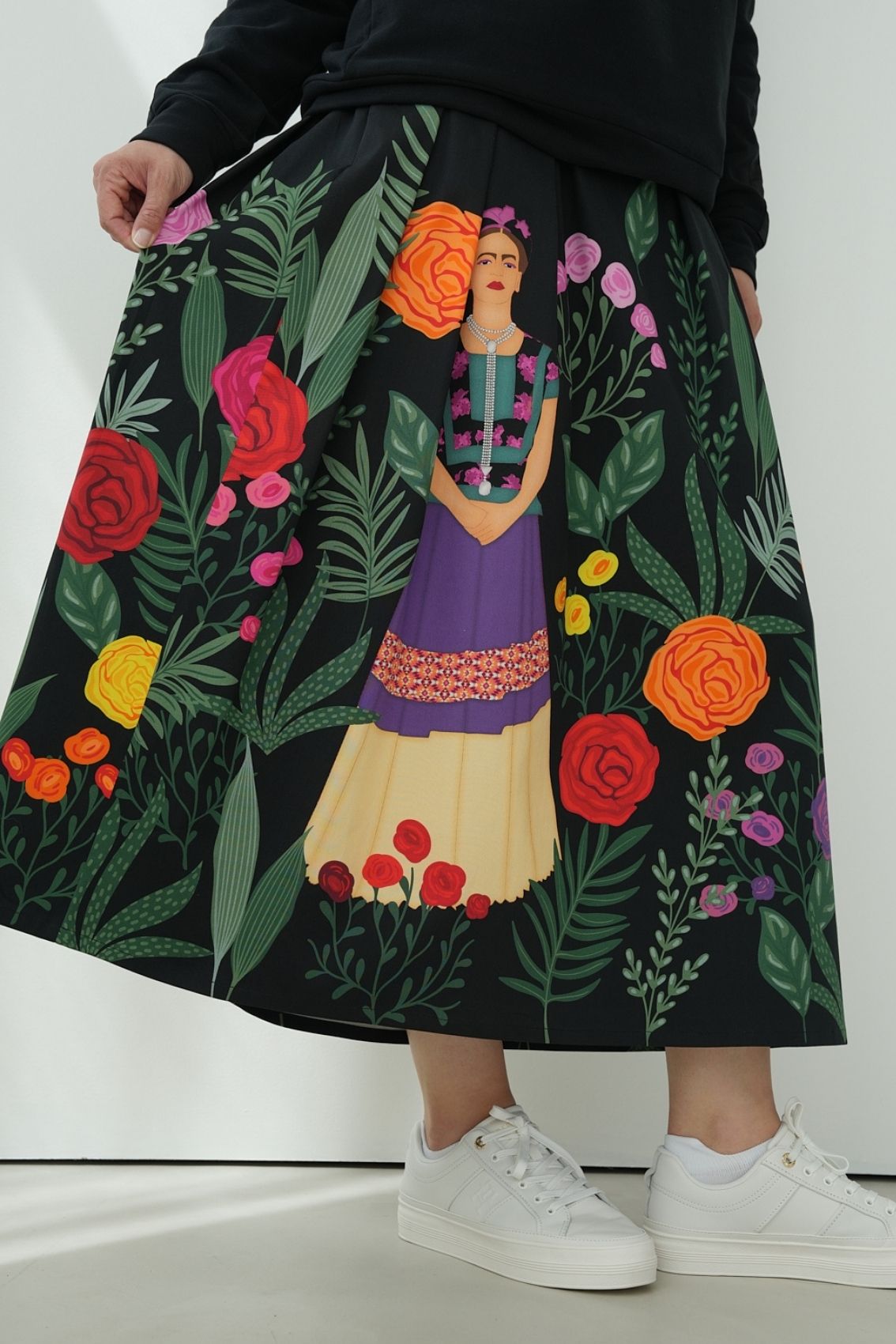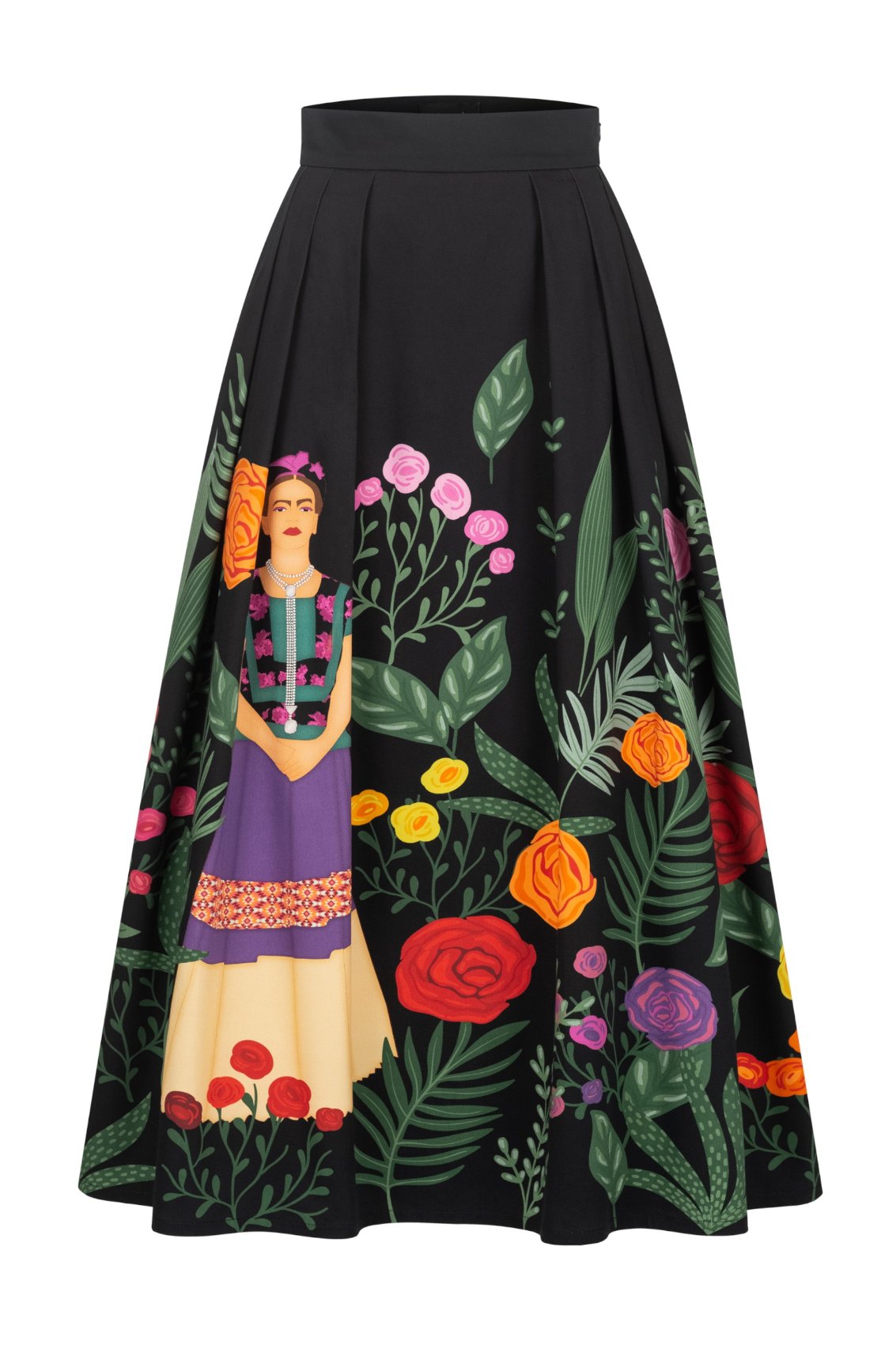 Ausdrucksstarker A-Linien-Rock – inspiriert von mexikanischer Kunst, mit Seitentaschen.