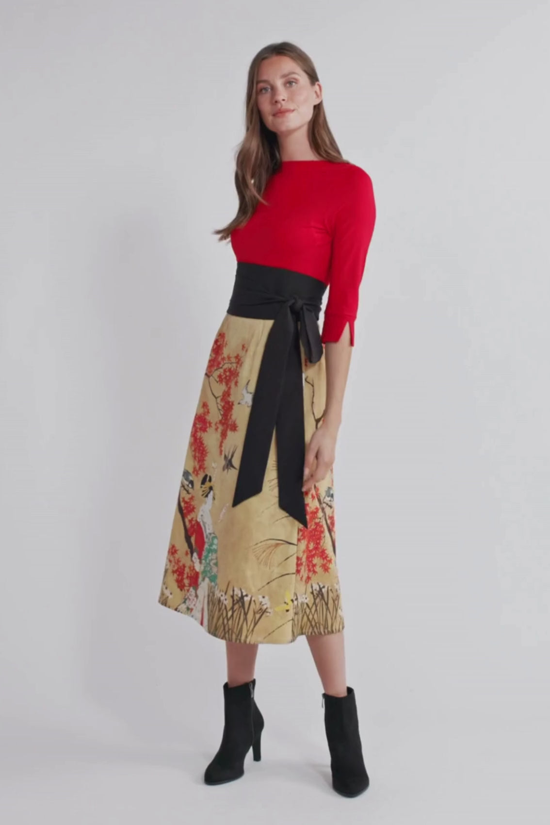 A-Linie mit Seitentaschen – kunstvoller Print trifft auf komfortabel gefütterte Baumwollqualität.